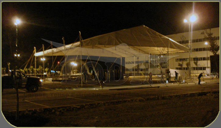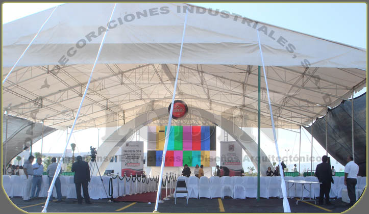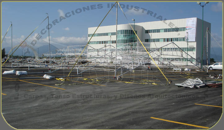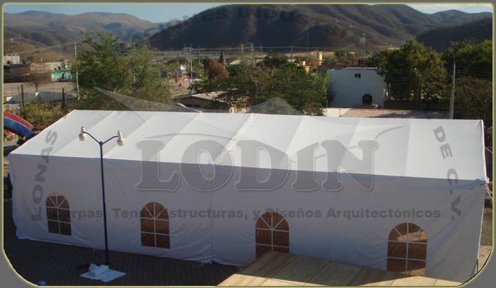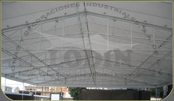 Lonas y Decoraciones Industriales, S.A de C.V. Le ofrece innovación de carpas convencionales con estructura modular desmontable, cubierta de lona a dos aguas fabricada en lona 610 con cortinas perimetrales plafón de tela que da una apariencia estética para cubrir la estructura, Anchos que manejamos: Carpa 5m., Carpa 10m., Carpa 15m., Carpa 20m., Alturas variables.