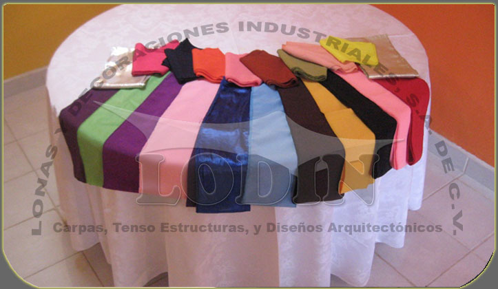 Lonas y Decoraciones Industriales, S.A de C.V. Le ofrece innovación de mantelería y fundas fabricación de mantelería y fundas para Eventos, Banquetes, Hoteles y restaurantes. Empresa 100% Mexicana ofreciendo venta de mayoreo y menudeo de mantelería, cubre sillas, cubre manteles, bandas para sillas y servilletas; Ofreciendo la mejor calidad en telas para cubrir las necesidades de nuestros clientes con excelentes precios.