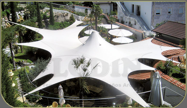 Lonas y Decoraciones Industriales, S.A de C.V. Le ofrece innovación de velíaras Somos expertos en Velarías para negocios, áreas de exposición y jardines actual mente ya contamos con algunos diseños de velarías en alquiler.